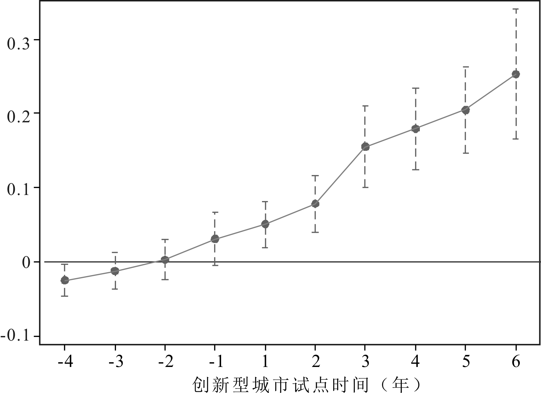 图2 创新型城市试点前4年及后6年平行趋势检验