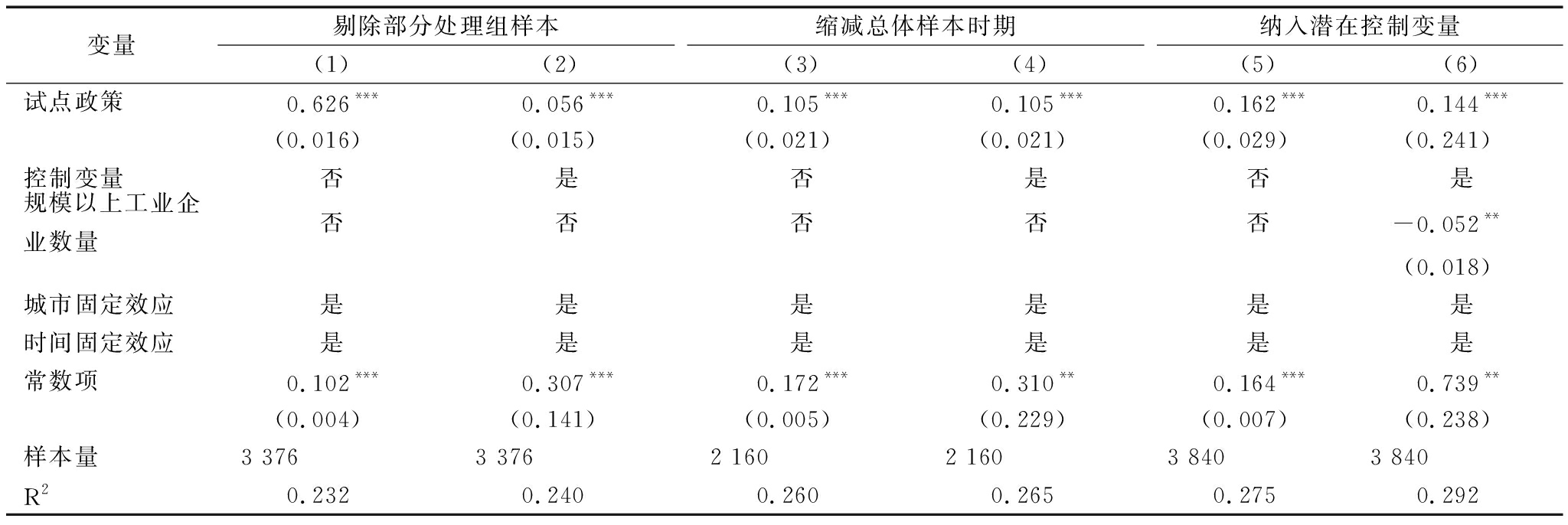 (3)安慰剂检验。本文从如下3个方面进行安慰剂检验:剔除部分样本、更改样本周期、增加潜在控制变量。