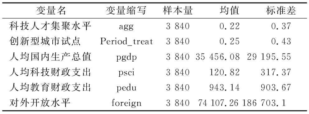 其中,i表示城市,t表示年份,aggit代表城市科技人才集聚水平,period_treat代表获批创新城市试点的虚拟变量,城市在成为试点后取值1,其余年份为0,Controls代表一系列控制变量,μ和λ分别为城市固定效应及年份固定效应,ε为随机误差。
