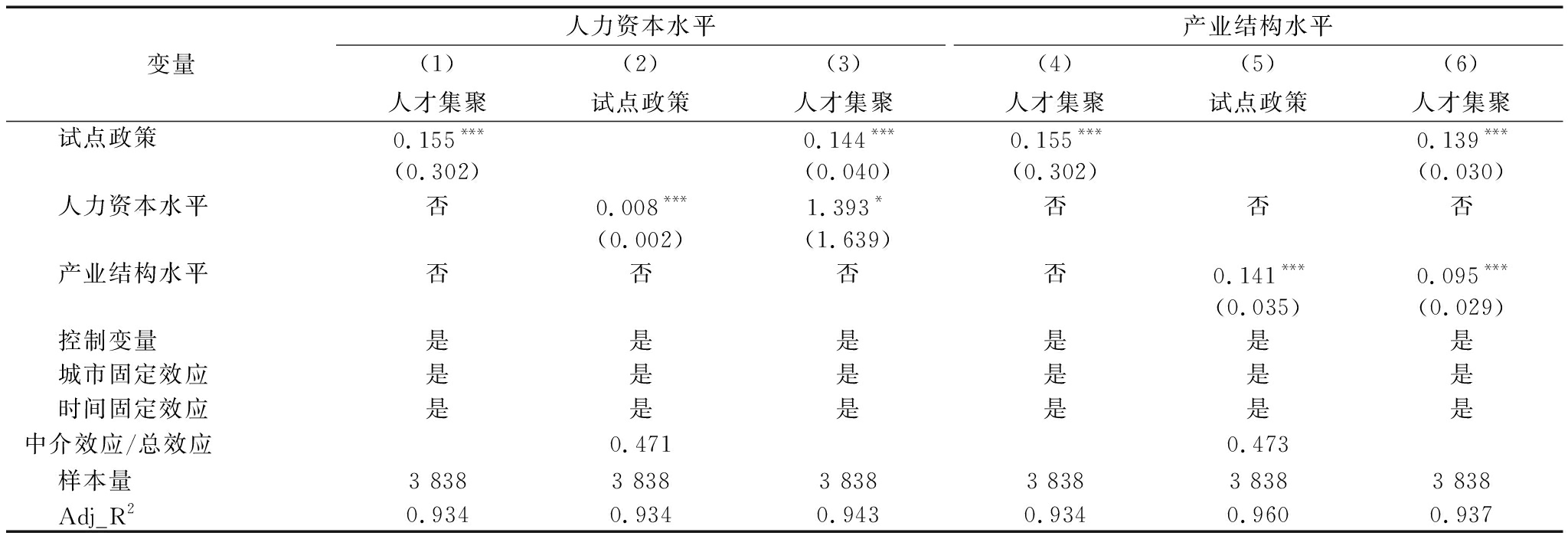 H3b:创新型城市试点通过作用于产业结构水平影响科技人才集聚水平。