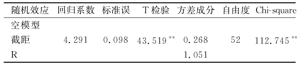 随机效应回归系数标准误T检验方差成分自由度Chi-square空模型截距4.2910.09843.519**0.26852112.745**R1.051