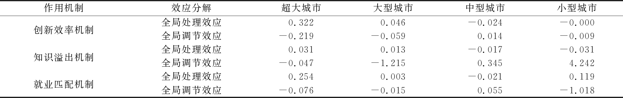作用机制效应分解超大城市大型城市中型城市小型城市创新效率机制全局处理效应0.3220.046-0.024-0.000全局调节效应-0.219-0.0590.014-0.009知识溢出机制全局处理效应0.0310.013-0.017-0.031全局调节效应-0.047-1.2150.3454.242就业匹配机制全局处理效应0.2540.003-0.0210.119全局调节效应-0.076-0.0150.055-1.018