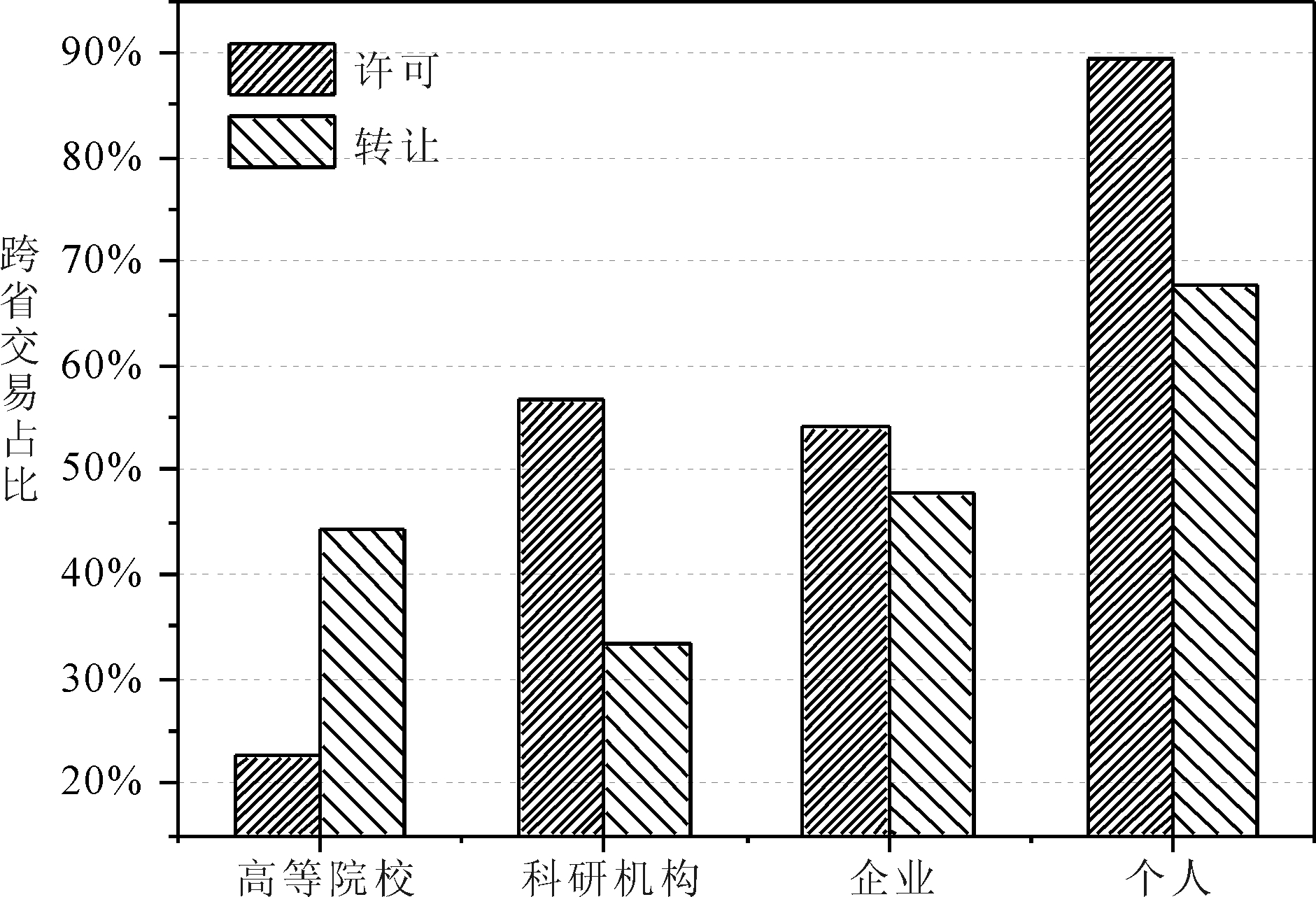 图3 不同类型创新主体跨省专利许可与转让比例
