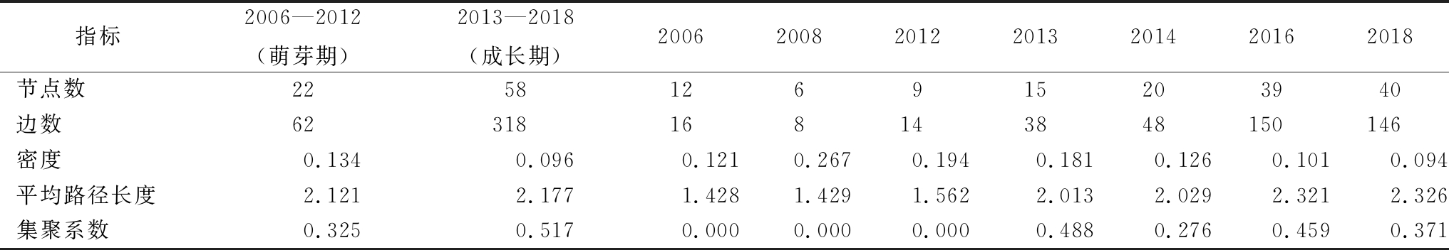 表2 2006—2018年智能网联汽车跨国技术合作网络整体特征