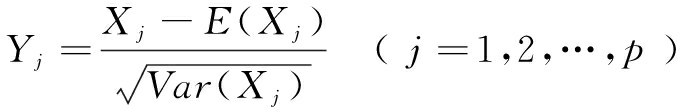 对原始数据进行标准化,标准化后的数据矩阵Y=(Yij)n*p