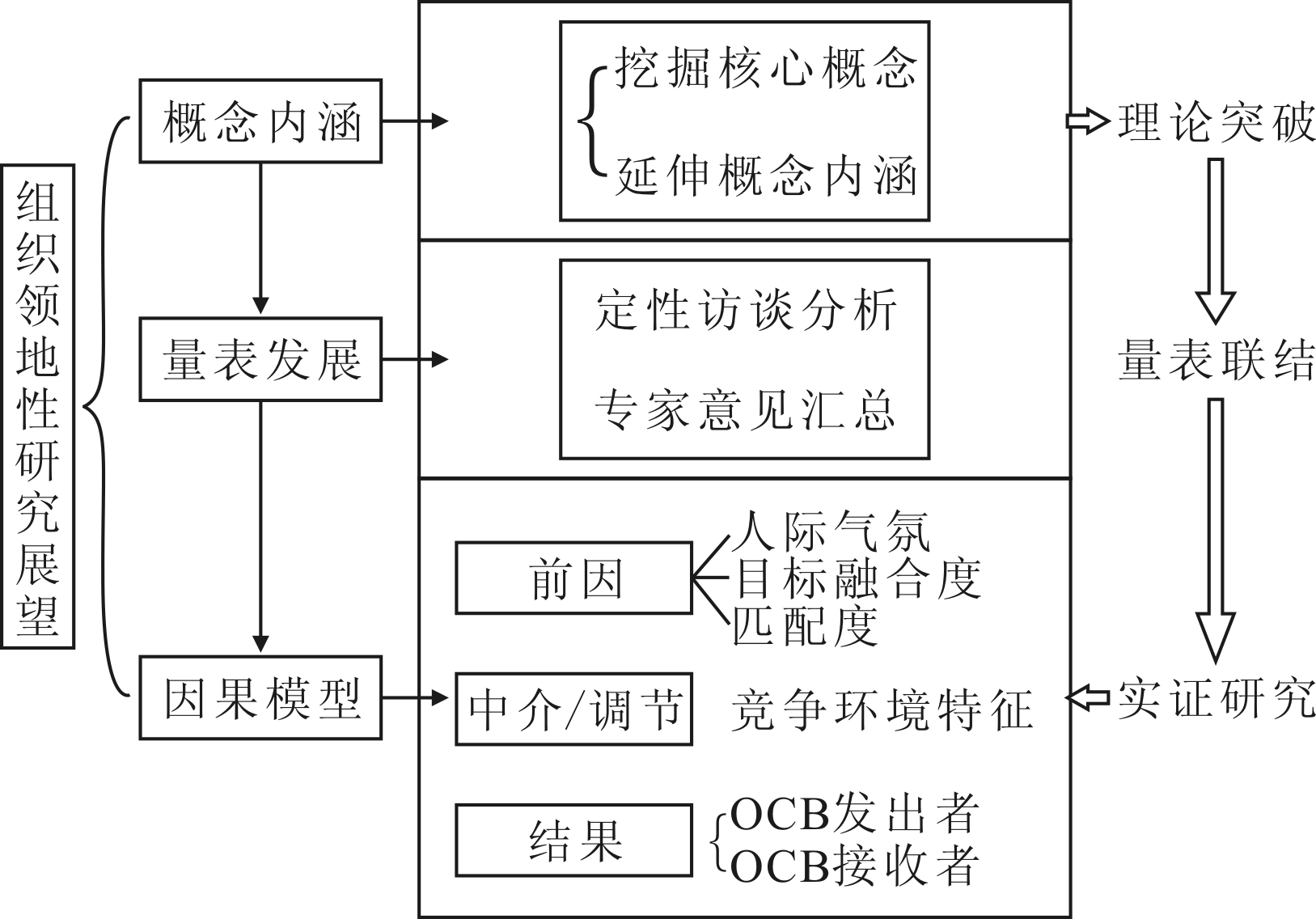 针对组织领地性概念,后续研究可以从概念深入探讨、内涵与外延界定、相关概念对比等方面展开讨论。