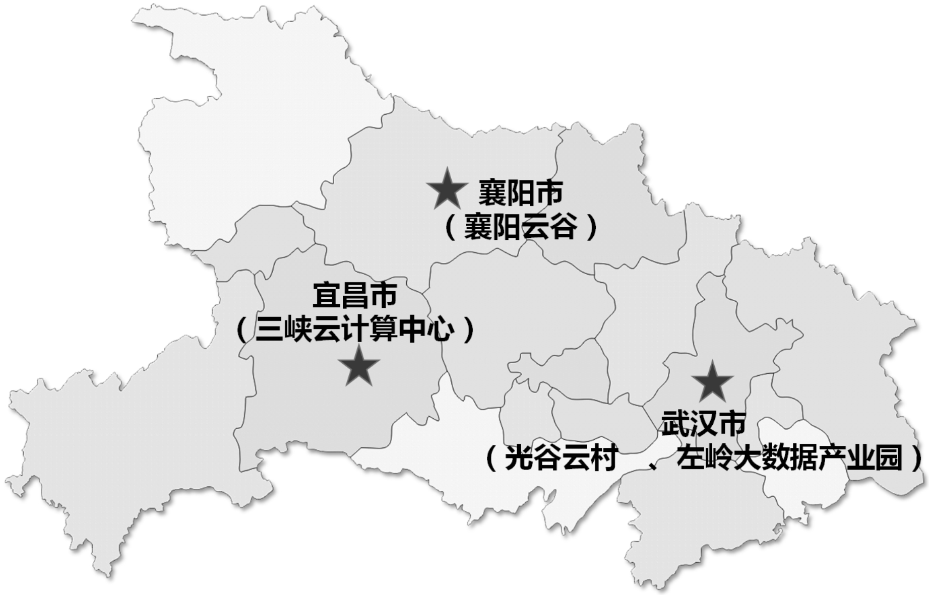 目前,湖北省“互联网+”和大数据产业正初步呈现以武汉为龙头、宜昌和襄阳为两翼的“三足鼎立”格局(如图1)。
