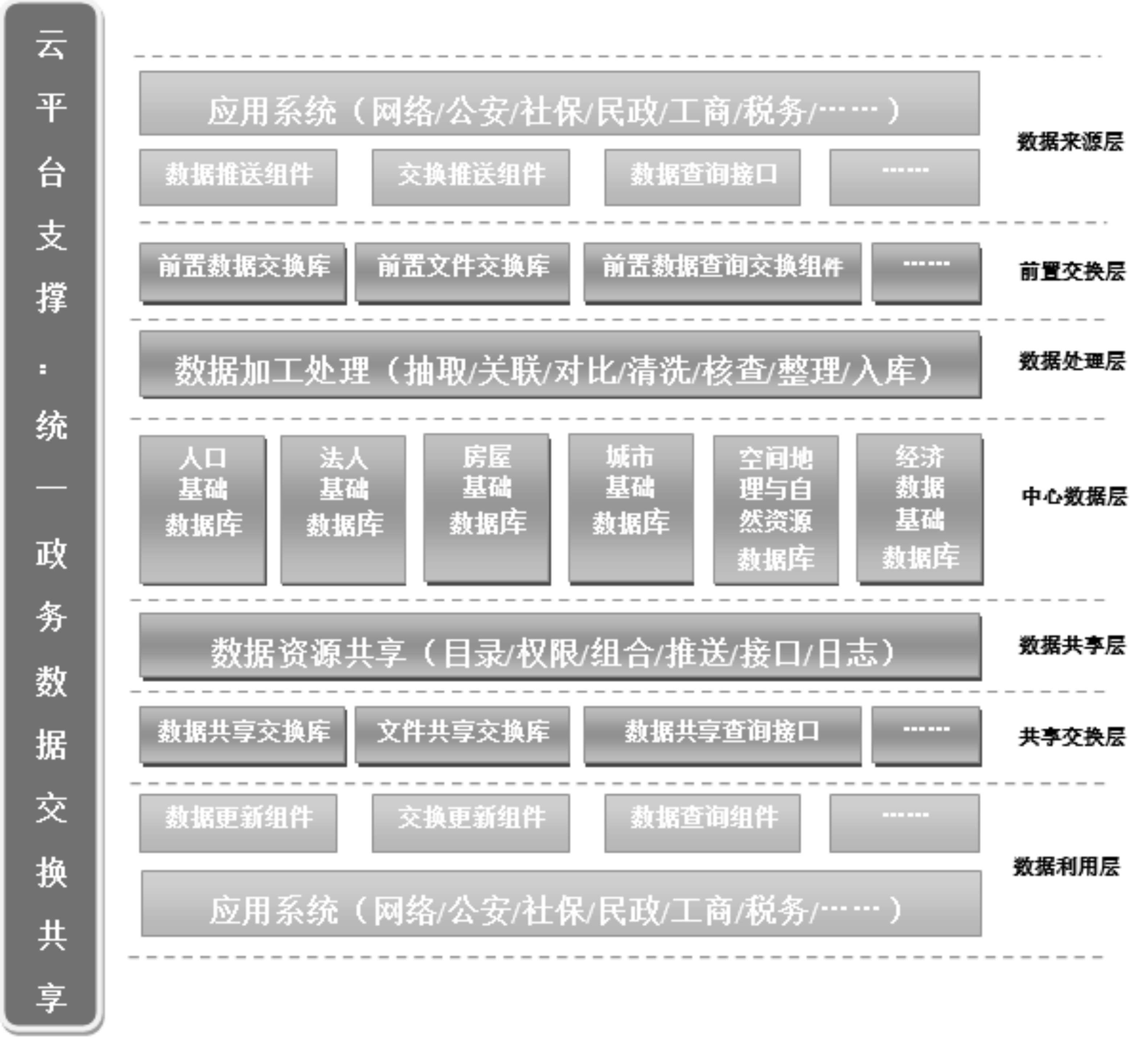 当前的一项重要工作是推动数据开放与共享、消除信息孤岛,首先,需要加强公共数据的互联、开放、共享,加快政府信息平台整合,推进数据资源向社会开放,需要系统谋划和统筹考虑,确定各职能部门数据共享范围和边界,明确相关责任者的主体责任。同时,需加强政府部门信息资源横向整合和管理,建设全省统一的政务资源库。对数据编码和格式要求进行统一,建立政府开放共享信息资源平台和目录;鼓励推进与民生保障服务相关的信用、交通、医疗、卫生、就业、社保、地理、环境、金融、气象等领域数据向社会开放[21];优化升级数据加工应用服务业,鼓励研究机构和企业合作,对公共数据与商务化数据进行分析、综合和价值挖掘。