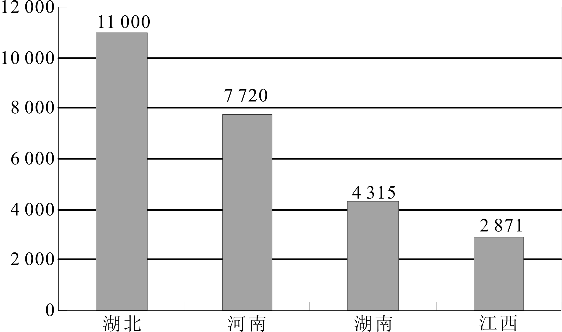 图4 中部部分省份2015年电子商务交易额(亿元)