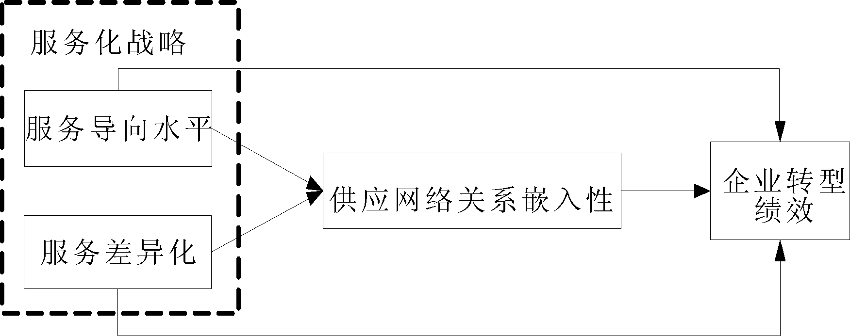 图3 服务化战略、供应网络关系嵌入性及转型绩效关系模型