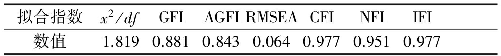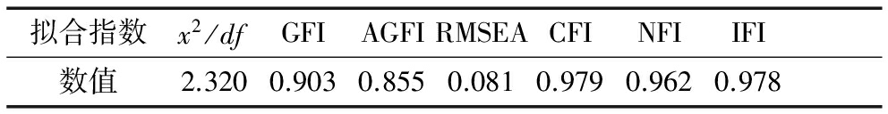 表5 中介影响模型拟合指数