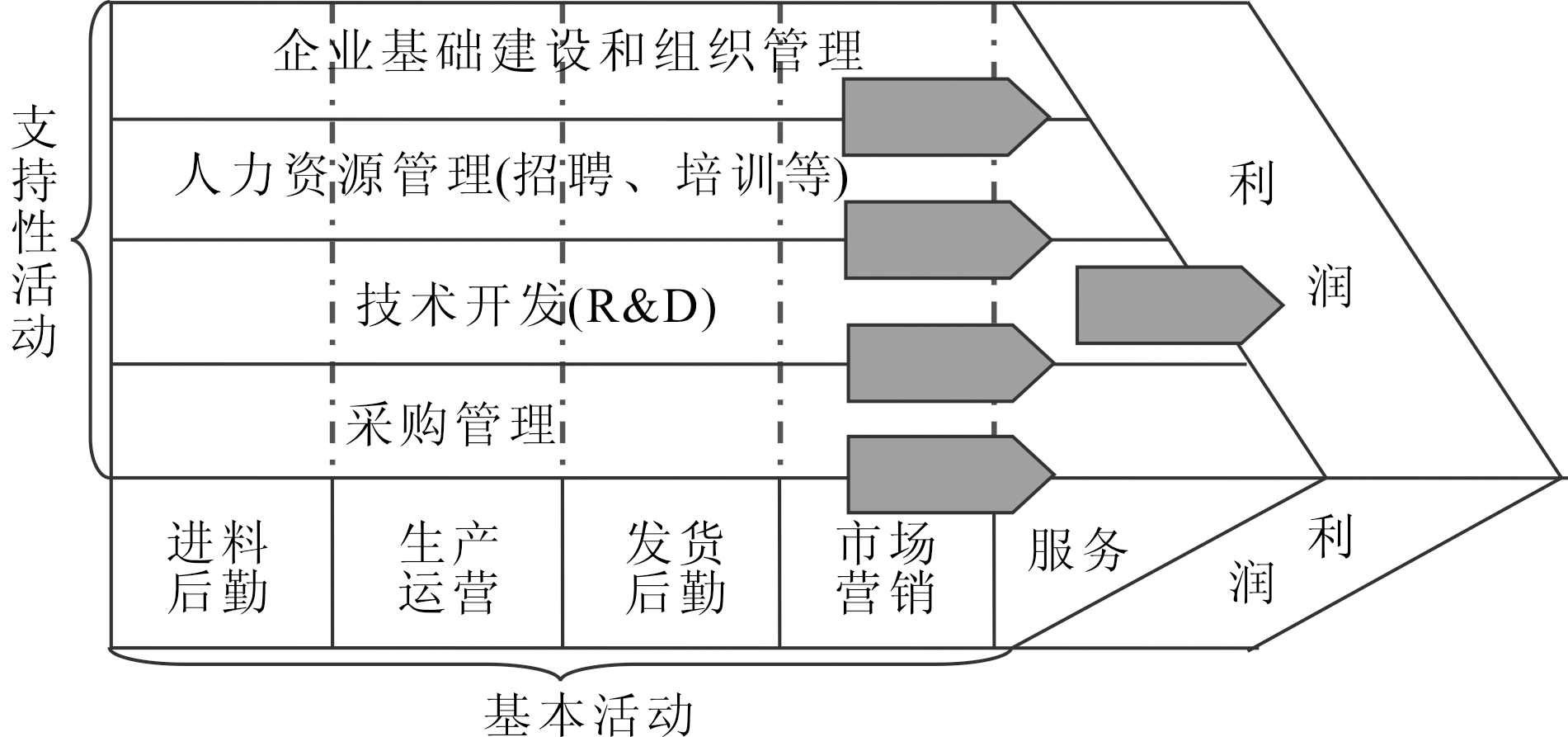 图3 基于Porter“价值链”模型的价值模块耦合(黑色箭头表示“耦合”)