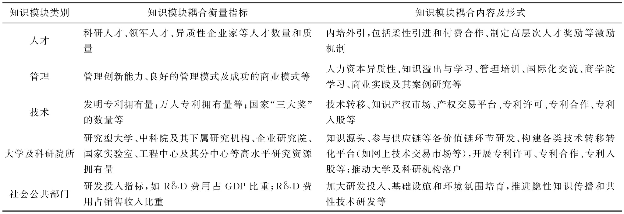 表1 战略性新兴产业发展知识模块耦合内容与方式
