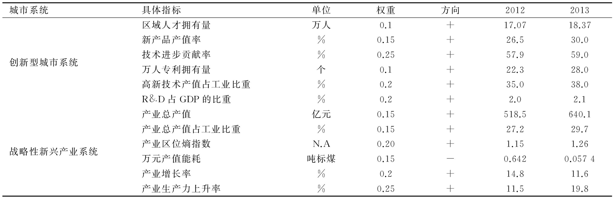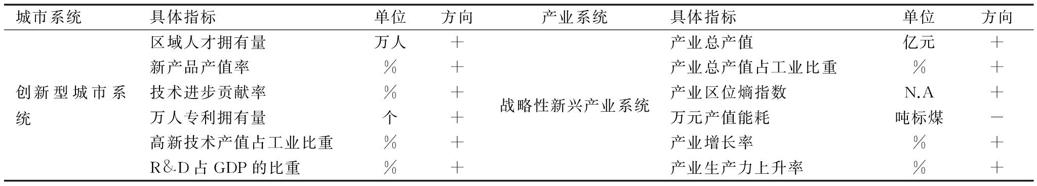 表2 创新型城市与战略性新兴产业耦合指标体系