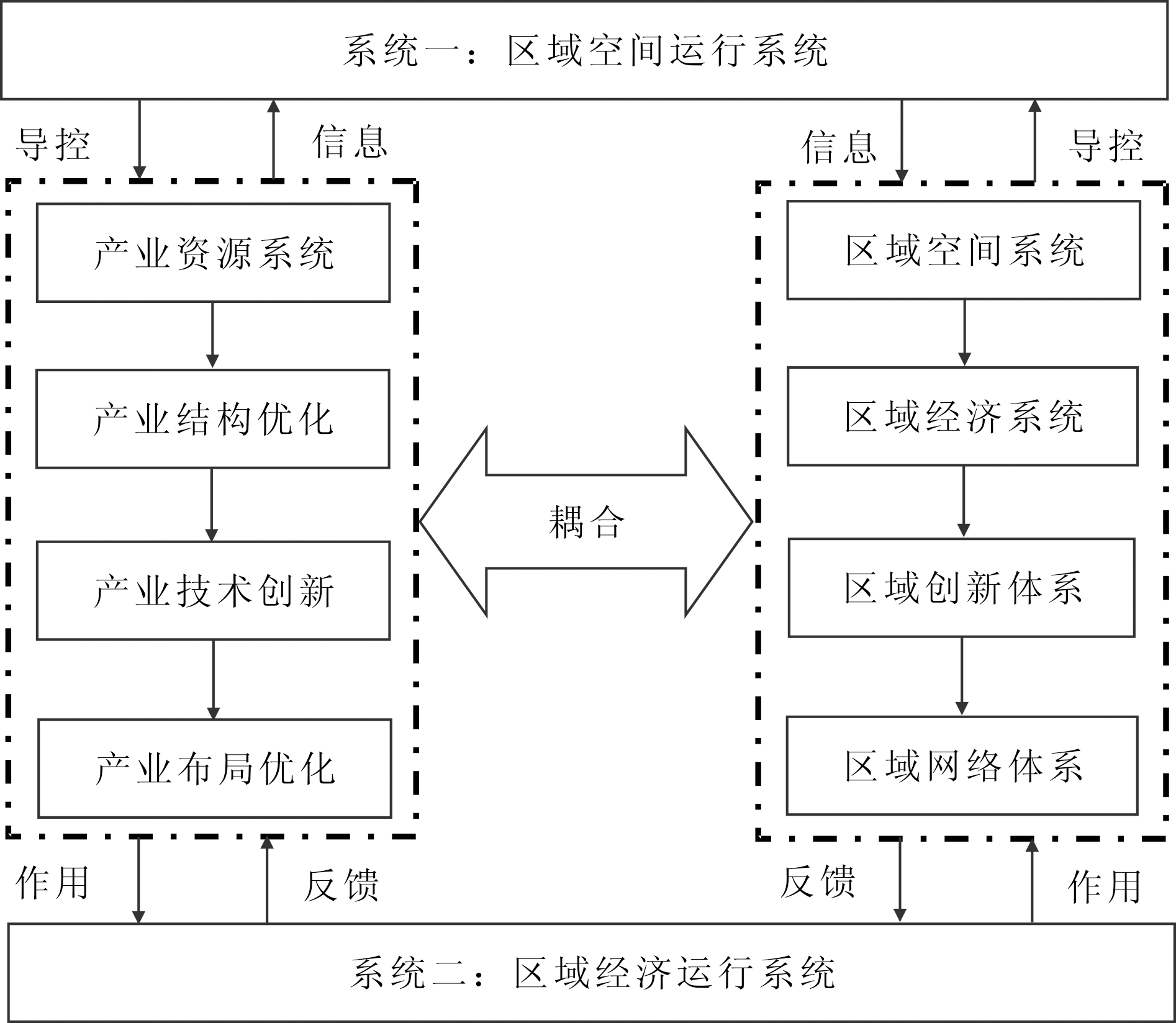 耦合是一个物理学概念,最早源于20世纪50年代,该词在物理学上是指将多个电路连接起来并使之在能量传输过程中相互影响、相互作用的方法。“耦合模型理论(Coupled-Mode Theory)”的代表人物Haus于1991年受邀贡献了其论文《Coupled-Mode Theory》,并系统阐述了其耦合理论。“耦合”一词早期主要出现在微波理论和光电子学及近年来光纤、电子信息技术、电磁学、智能配电中的耦合微电网[3]等领域。耦合理论多用于被动结构,如耦合谐振器和耦合波导,前者是时间上耦合模态的例子,后者是空间上耦合模态的例子。物理学领域学者也因此基于能量守恒、主动和被动结构、正交和非正交等情况给出了通过变分原理计算的耦合系数和耦合能量计算公式[4-6]。在中国现代汉语《辞海》中,“耦合”是指两个或两个以上系统或运动方式之间通过各种相对作用而彼此影响以至联合起来的现象,是在各自系统间良性互动下形成的相互依赖、相互协调、相互促进的动态并联关系。综合国内外关于“耦合”一词的界定,本文认为,“耦合”一词用于产业经济学领域,其狭义概念是指产业之间彼此相互影响、相互融合、相互促进的方法和达成的状态;而广义概念则应扩展到空间、要素、制度等产业生存发展等特定系统进行界定。学界运用“耦合”这一物理学概念及测度方式研究了战略性新兴产业耦合度和融合度问题,如以“容量耦合”为分析框架,通过构造战略性新兴产业、传统产业与区域经济空间三者所组成的耦合系统测算3个子系统间的耦合协调度[7]。而具体耦合度评价则呈多元化发展趋势,具体表现在如下几个方面:一是将产业耦合持续发展类型划分为衰退型和发展型两类,其中衰退型和发展型又各细分为5类[8];二是将耦合协调度等级划分为失调和协调两类,其中失调和协调又各细分为5类[9]。除运用物理公式进行定量测度外,国内学者还有一些定性研究成果:一是基于产业研究视角,认为耦合主要是战略性新兴产业内部或传统产业内部企业间的耦合、战略性新兴产业子系统内部各产业之间的耦合或传统产业子系统内部各产业间的耦合、战略性新兴产业子系统与传统产业子系统间的耦合[10]。也有学者主要基于供应链和价值链关系,将其分为生产、价值和知识3类模块耦合[11],但缺乏系统整合,范式成熟度较低;二是基于时空研究视角,认为战略性新兴产业与传统产业在时间逻辑上经历了双峰逼近、协调发展、良币驱逐劣币3个阶段;在空间逻辑上形成了产业要素、结构、布局和制度4个方面耦合[8];三是基于产城耦合视角,认为二者是相互促进的螺旋式上升关系,是一个从低级共生向高级共生的动态演化过程[12],但此研究仅停留在概念型构层面,也未进行耦合度有效测度。