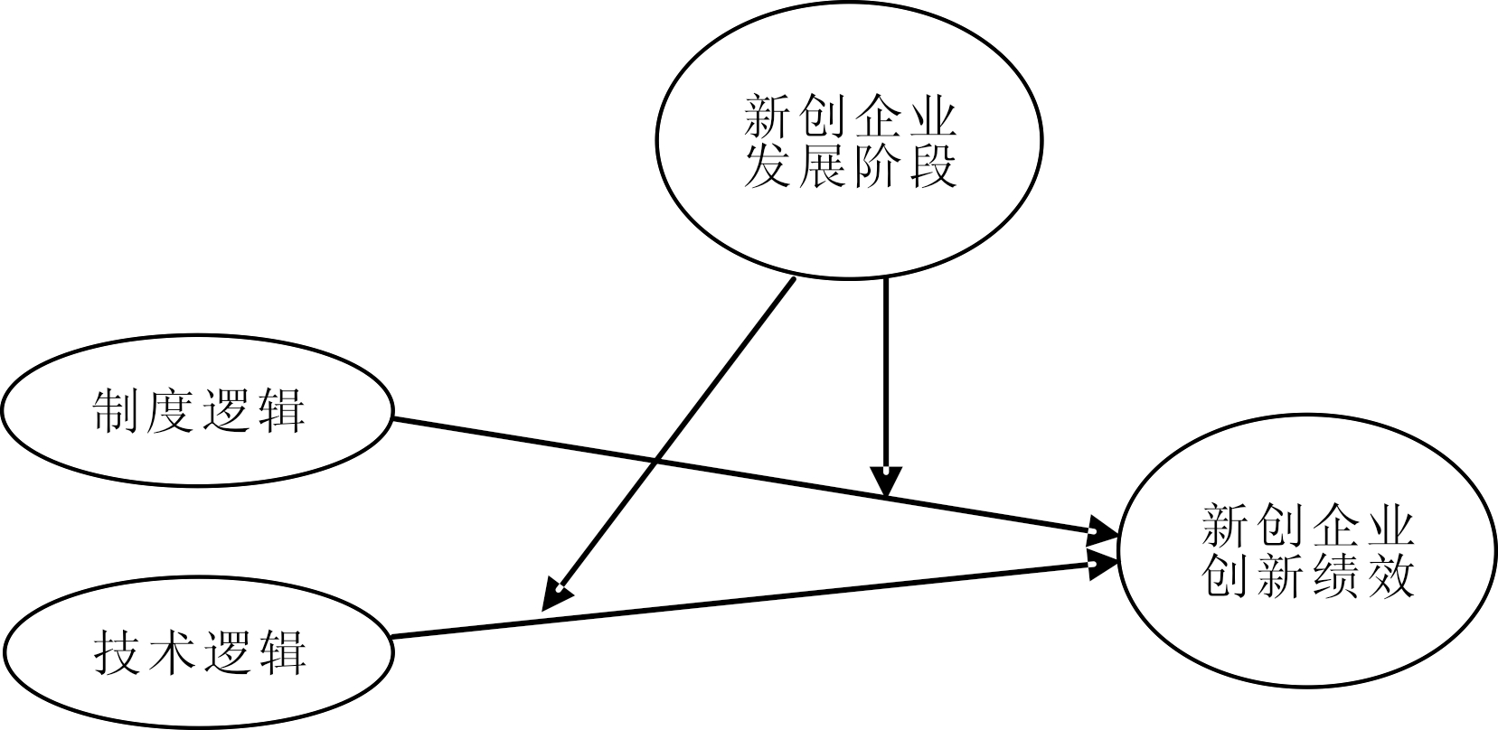 图1 制度逻辑及技术逻辑在新创企业发展阶段调节下对企业创新绩效的作用