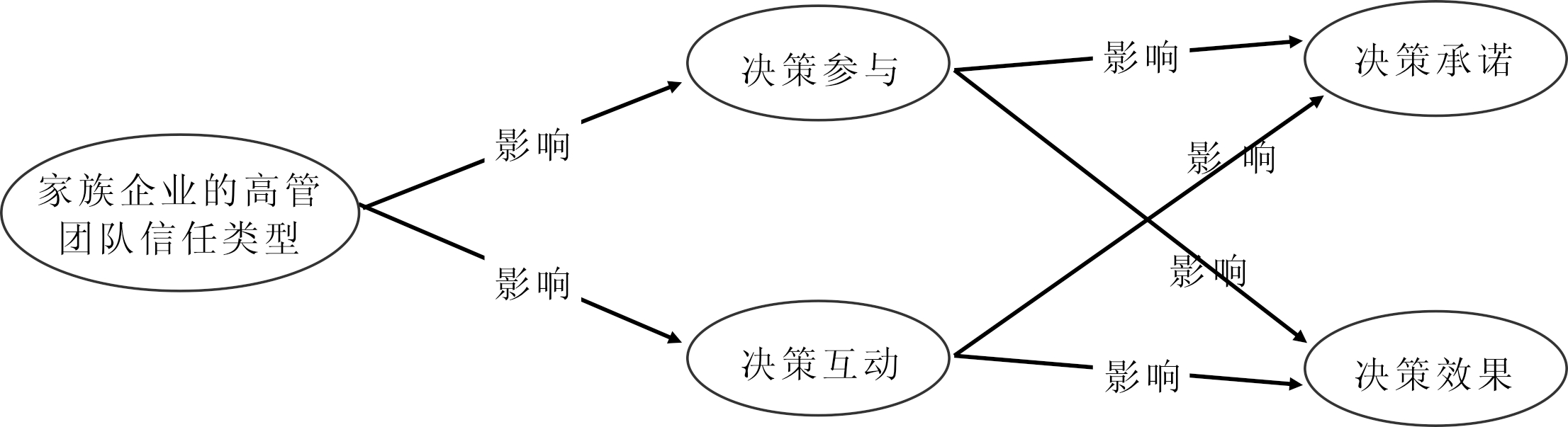 H4:家族企业高管团队的信任类型会影响高管团队的战略决策参与和互动程度,高管团队的战略决策参与和互动程度决定了战略决策质量和决策承诺,进而形成不同的战略决策效果。