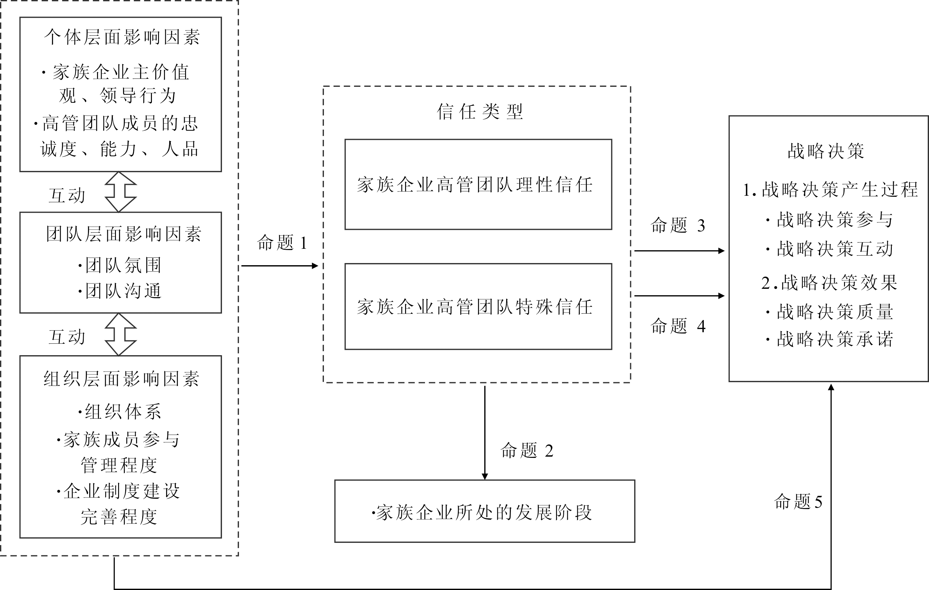 从战略决策过程理性可以推断,家族企业高管团队成员作为战略决策的参与者,在战略决策过程中要保持高度的行为理性,其中就包含理性信任。决策者之间的互相信任,即高管团队的信任是合作的前提条件,信任度的高低决定了不同战略决策过程的特征及结果,进而影响了企业战略决策效果。