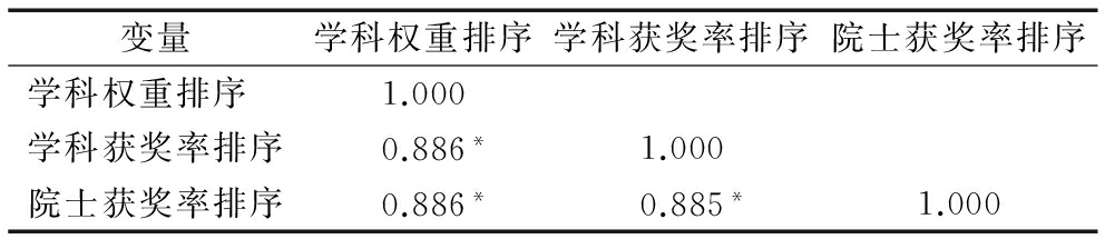 变量学科权重排序学科获奖率排序院士获奖率排序学科权重排序 1.000学科获奖率排序0.886*1.000院士获奖率排序0.886*0.885*1.000