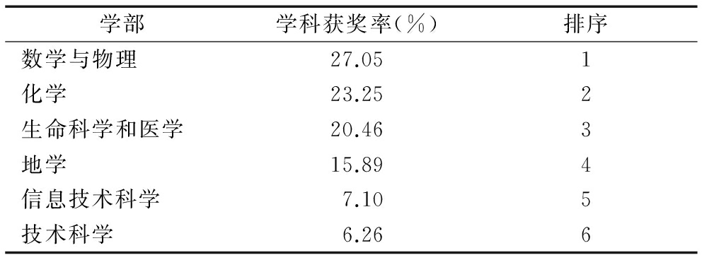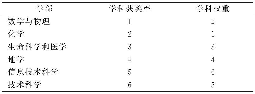 学部学科获奖率学科权重数学与物理12化学21生命科学和医学33地学44信息技术科学56技术科学65