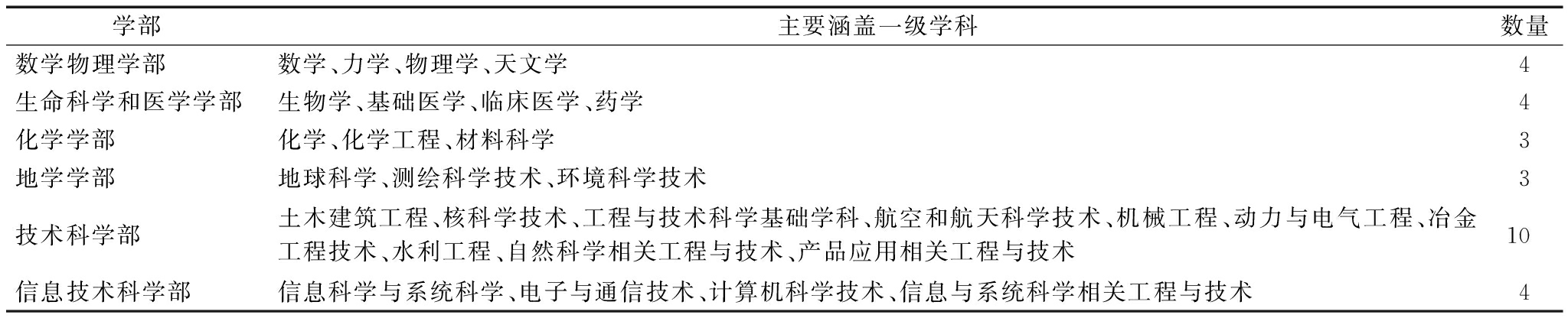 表2 中国科学院各学部学科主要涵盖一级学科情况