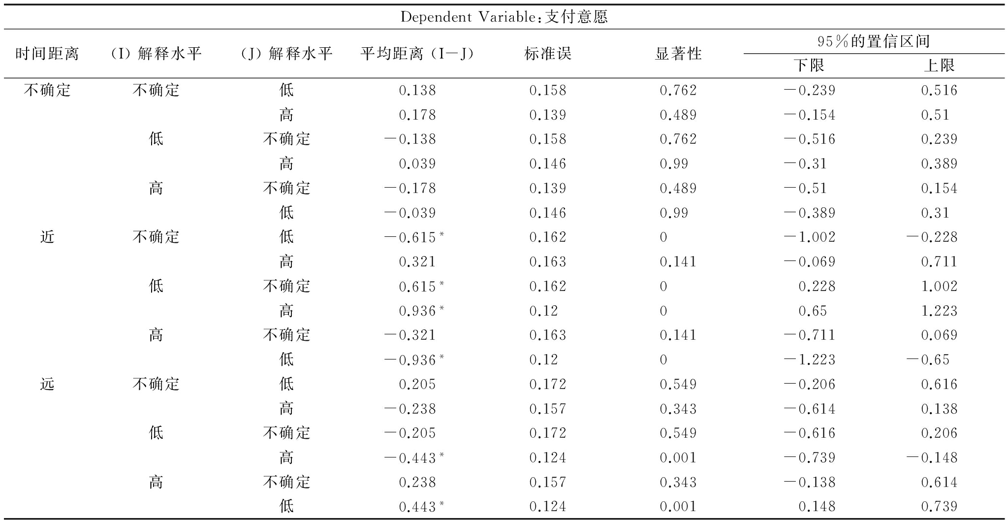 表16 不同时间距离下不同解释水平的支付意愿差异验证