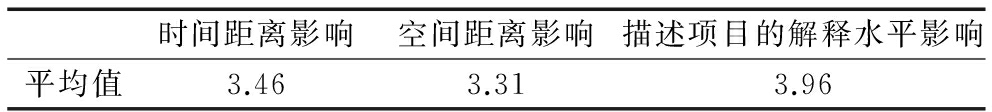 时间距离影响空间距离影响描述项目的解释水平影响平均值3.463.313.96