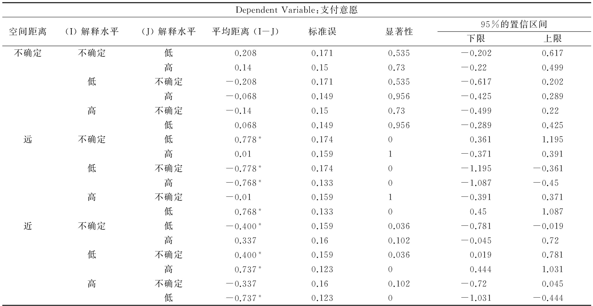 表19 不同空间距离下不同解释水平的支付意愿差异验证