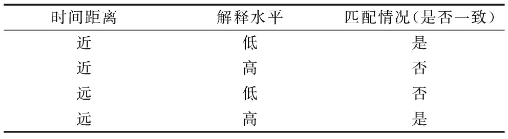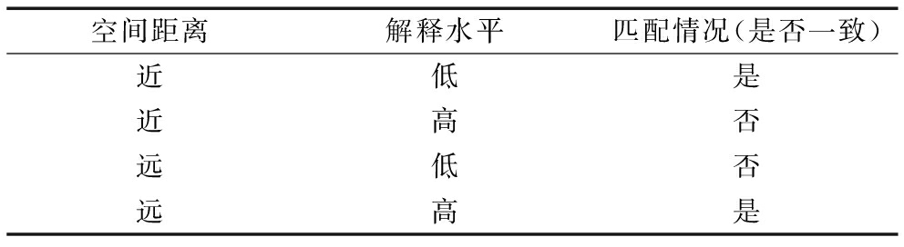 如表1所示,近时间距离与低解释水平匹配,远时间距离与高解释水平匹配,空间距离与解释水平的匹配也是一样。