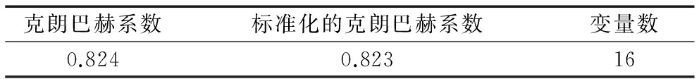 克朗巴赫系数标准化的克朗巴赫系数变量数0.8240.82316