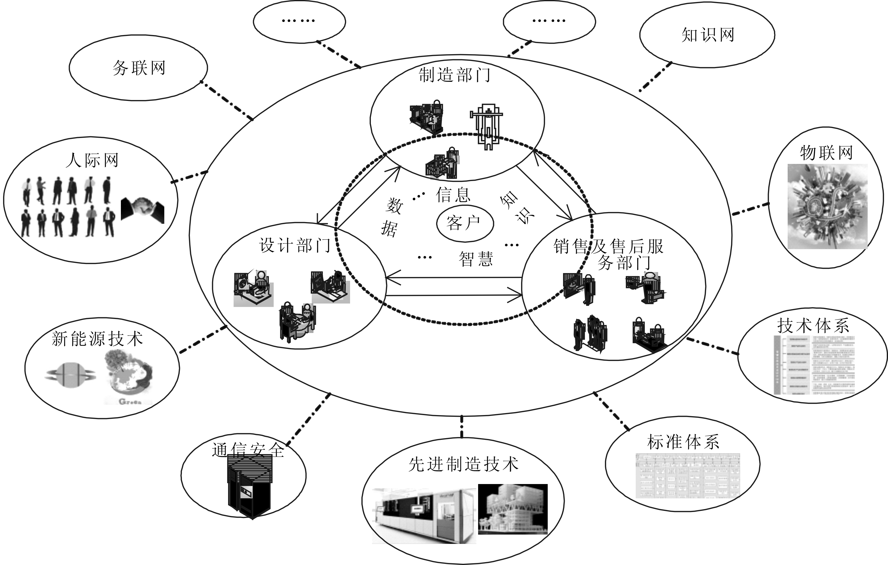 (4)制造基础上,由新能源和互联网引发的经济社会变革将制造基础从先进制造技术转向“互联网+”先进制造技术。其中,社会信息物理系统将彻底改变人机物环境交互方式,实现组织内实时感知、动态控制和信息服务。工业互联网将人际网、物联网、务联网、知识网、云计算等通过嵌入式系统连接装备,实现了覆盖广、可靠性高、延时低的工业网络互联;网络信息平台推动了关键技术的开放与共享,减小了时间、空间对人类活动交流方式的制约。