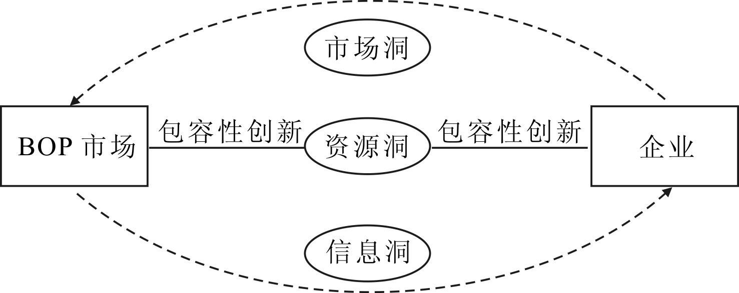 (3)信息获取、传播和扩散困难形成的“信息洞”。受收入水平的影响,BOP群体在选用产品时更加注重产品功能的实用性和价格的可负担性。由于地理分布较为分散,一般企业很难与BOP群体建立稳定的合作伙伴关系,加之信息不对称,企业难以及时获取市场信息,导致研发、生产和推广包容性创新产品难度增大。即便开发出相关产品,也会因为缺乏对目标市场消费习惯的了解而最终丧失市场份额。另外,由于缺乏必要的信息搜集机制和传播途径,广泛分布在BOP群体间的创新资源和能力被迫闲置或被低效运用,难以充分发挥企业在承接当地创新资源、加快实现外部经济发展过程中的作用。