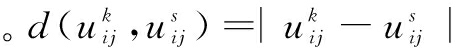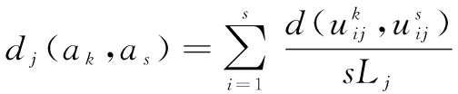 其中,dj(ak,as)表示专家ak、as在方案ei的cj属性上的判断值差异,s为方案的个数,Lj为属性cj上最大值与最小值之差