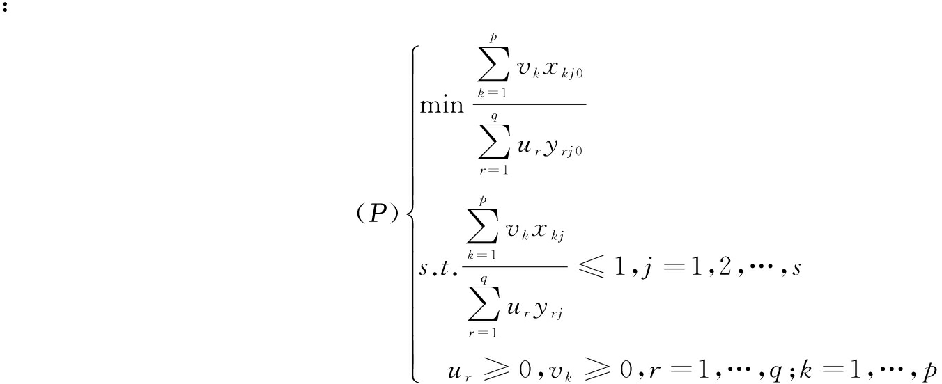 基于多属性群决策得出不同团队效率类型后,因不同类型的效率团队不具有可比性,对不同类型效率团队分别进行预期评价。设有s个DMUj(j=1,2,…,s),有p个输入指标,指标向量为Xj=(x1j,x2j,…,xpj)T,有q(q=n-p)个输出指标,指标向量为Yj=(y1j,y2j,…,yqj)T。