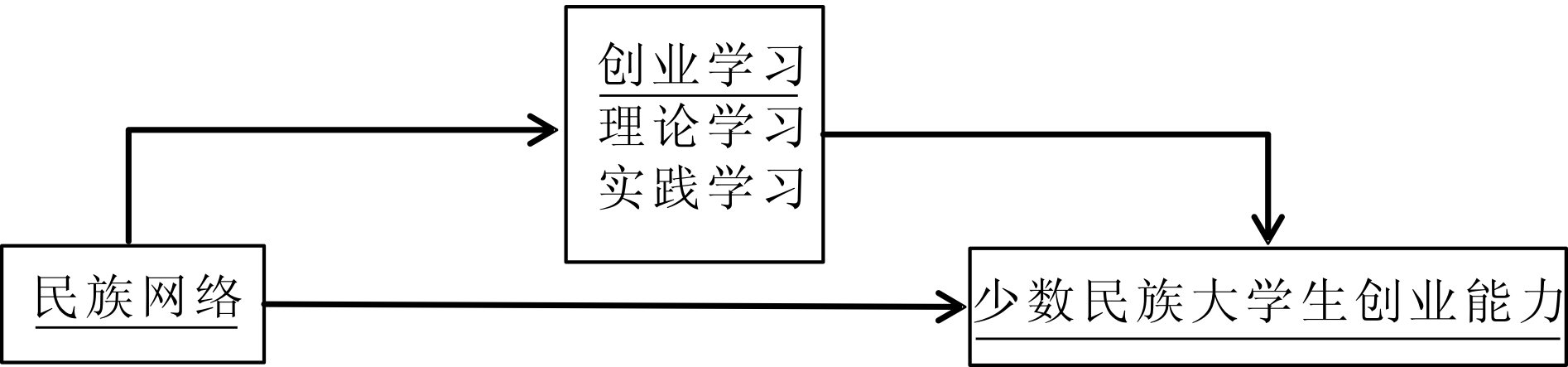 基于上述分析,本研究以创业学习作为中介变量,构建民族网络、创业学习、少数民族大学生创业能力三者之间的关系模型,探索民族网络对少数民族大学生创业能力的影响,分析创业学习在两者关系中的中介作用。