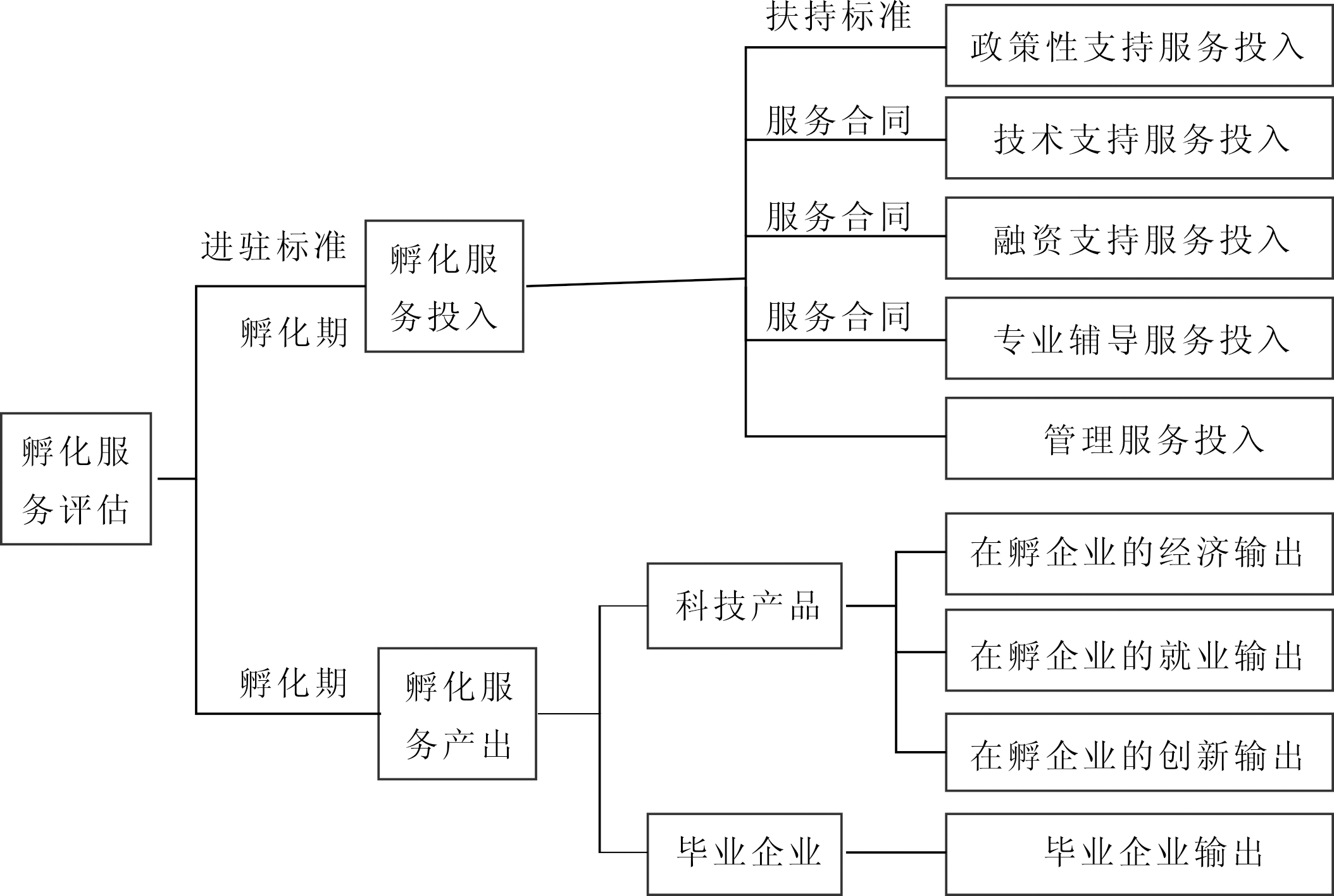 第一步:基于孵化服务,以科技孵化器(生产者)作为评估的投入端,以孵化器企业(消费者)作为输出端,确立孵化服务的投入模块、产出模块以及服务约束。