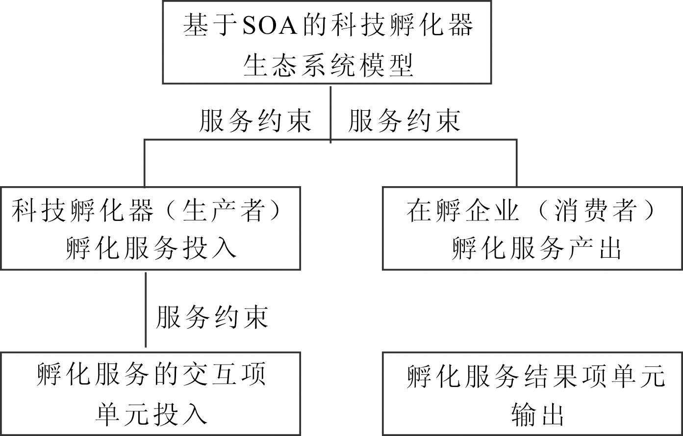 本文针对当前研究缺口,基于SOA建模思想,利用生态学、生态系统理论以及科技孵化器相关知识网络,构建科技孵化器生态系统模型,以解构科技孵化器孵化服务的生态化交互过程,进而揭示科技孵化器生态系统或者科技孵化器网络的交互细节;然后,在构建的科技孵化器生态系统模型基础上,以孵化服务投入与产出为评估标准,以孵化服务的实施约束为评估约束,构建基于孵化服务的科技孵化器生态系统评估框架;最后,借鉴SOA系统控制与治理思路,依据所构建的科技孵化器生态系统模型与评估框架,提出科技孵化器生态系统水平提升路径。