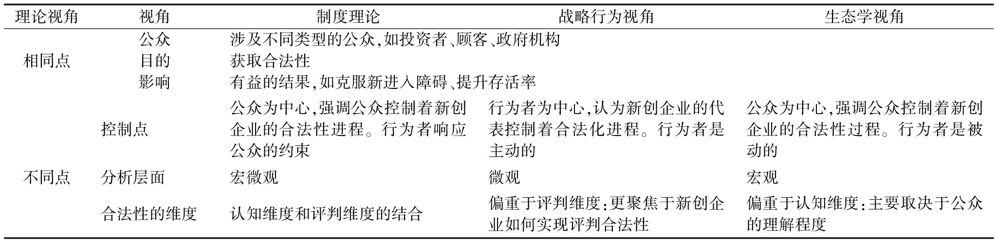 为更好地理解不同视角下合法性的获取机制,在此将三种理论的异同通过表1展示出来。