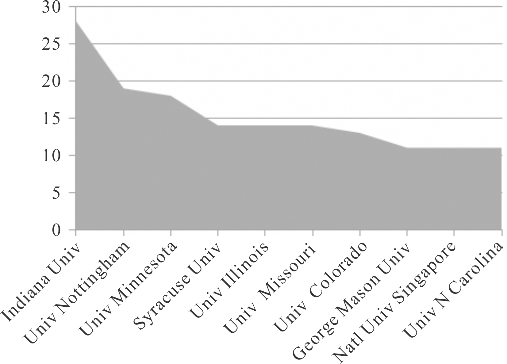 图2 发表创业机会数量最多的前十位科研机构统计