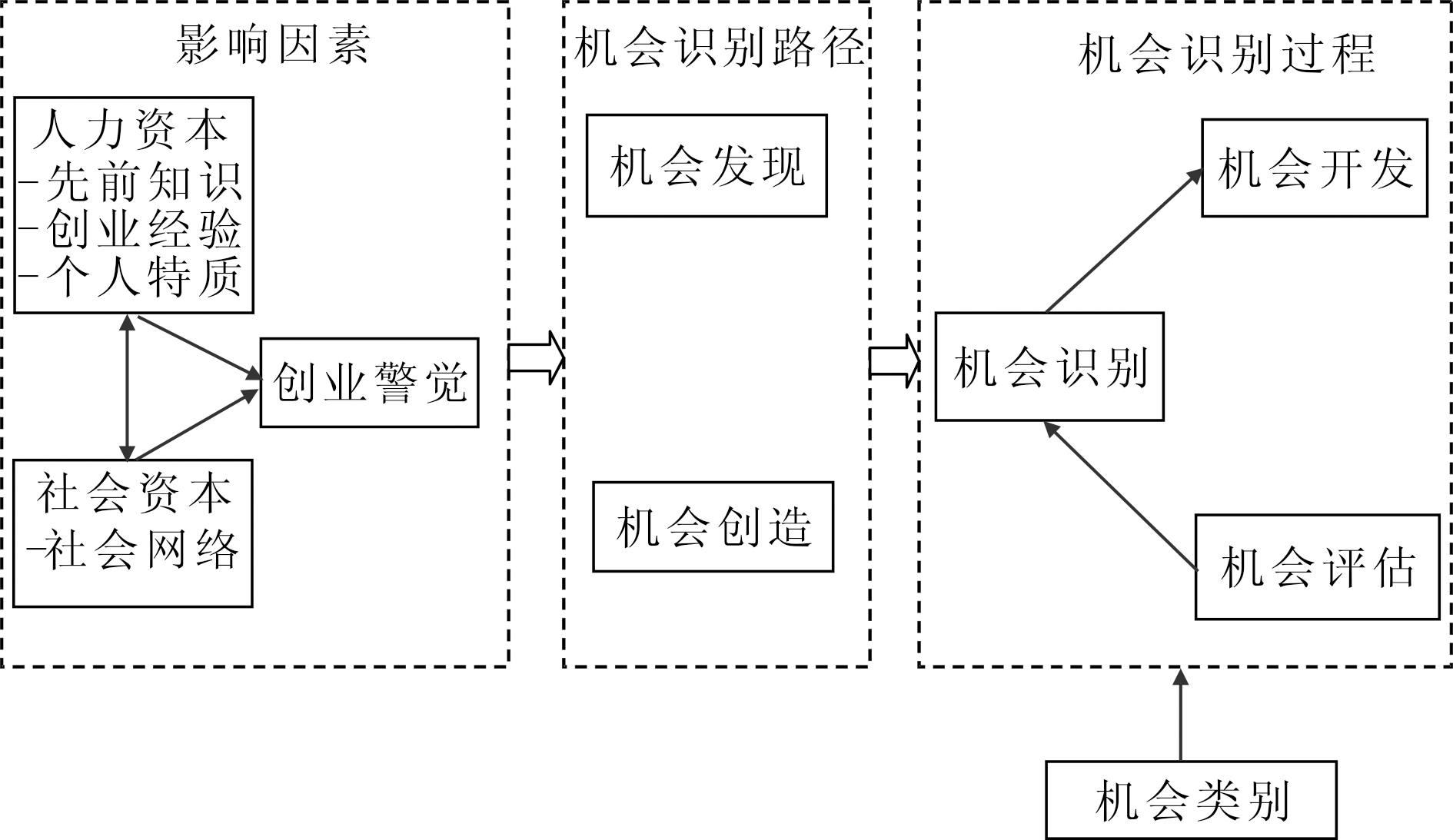 创业警觉在一系列因素(个人特质、先前知识、创业经验、社会网络)作用下得到强化,这些因素可以归类为创业者的人力资本和社会资本。具备较高人力资本质量的个人能更好地识别机会,在创业过程中成功进行机会开发的可能性更高。人力资本与社会资本能增强信息流动性,发现有价值的信息。