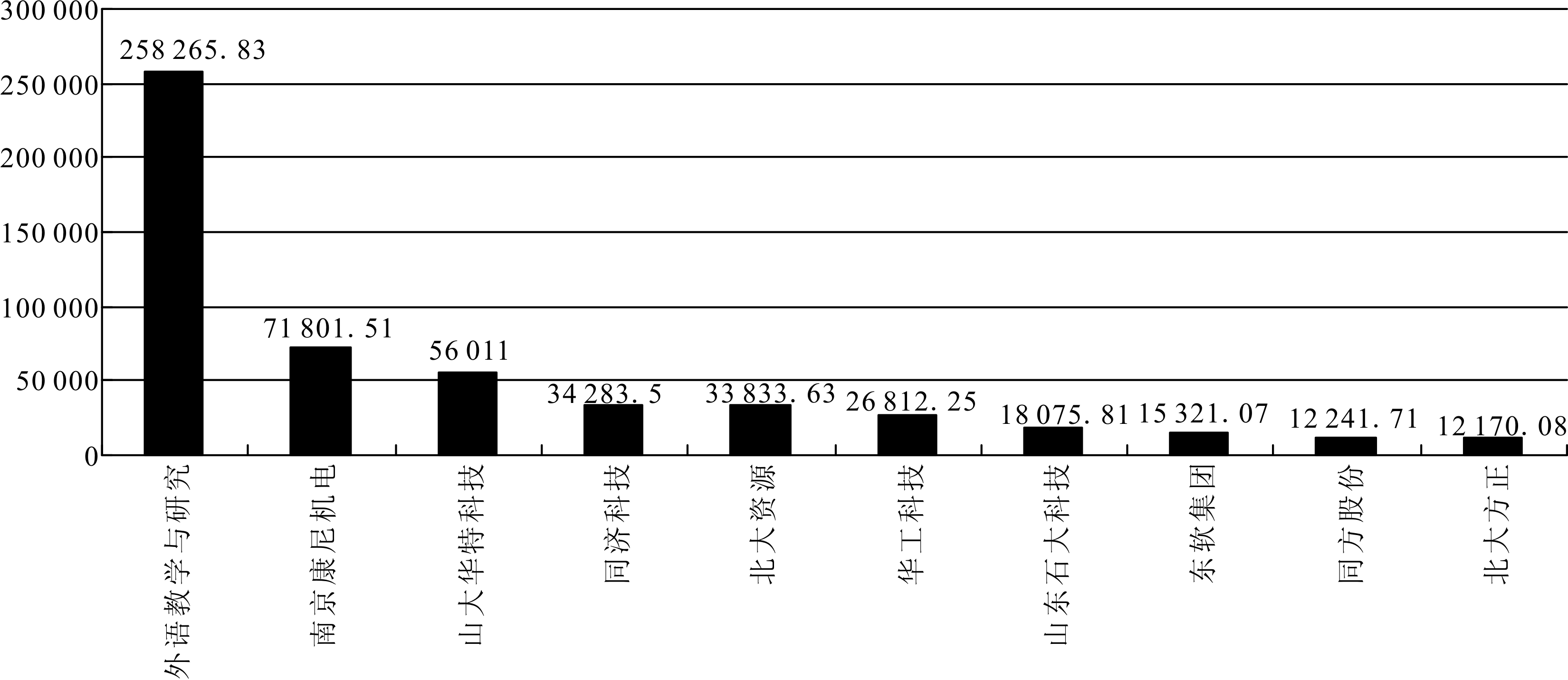 图2 2010年度全国高校科技企业按利润总额排名 (万元)