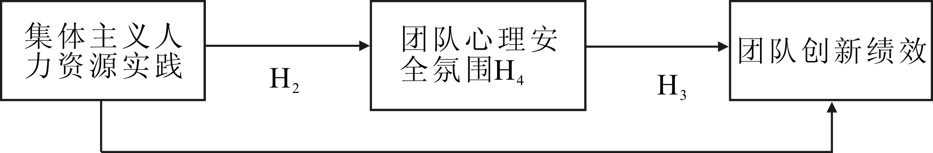 H4:团队心理安全氛围在集体主义人力资源实践和团队创新绩效关系间起中介作用。