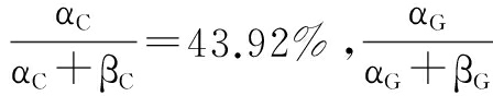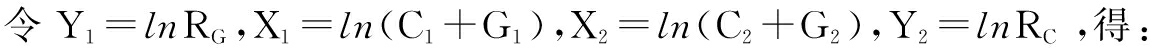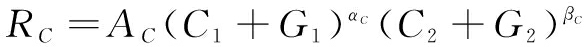 RC=(C1+G1)0.29(C2+G2)0.37 αG+βG≤1,αC+βC≤1,αG>αC,βG>βC,回归得到的参数结果符合模型假设,由此验证了模型的合理性。