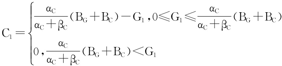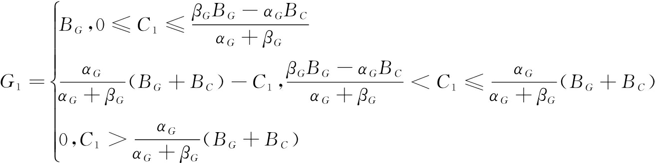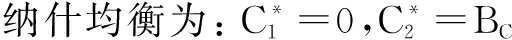 由公式(4)、公式(6)对应直线G1(C1)与C1(G1)的 交点给出了纳什均衡(C1,G1),可以进一步得到政府 和企业关于预研投资和研发投资的纳什均衡解(G1, G2)、(C1,C2),表1对以上几种情况进行了总结。
