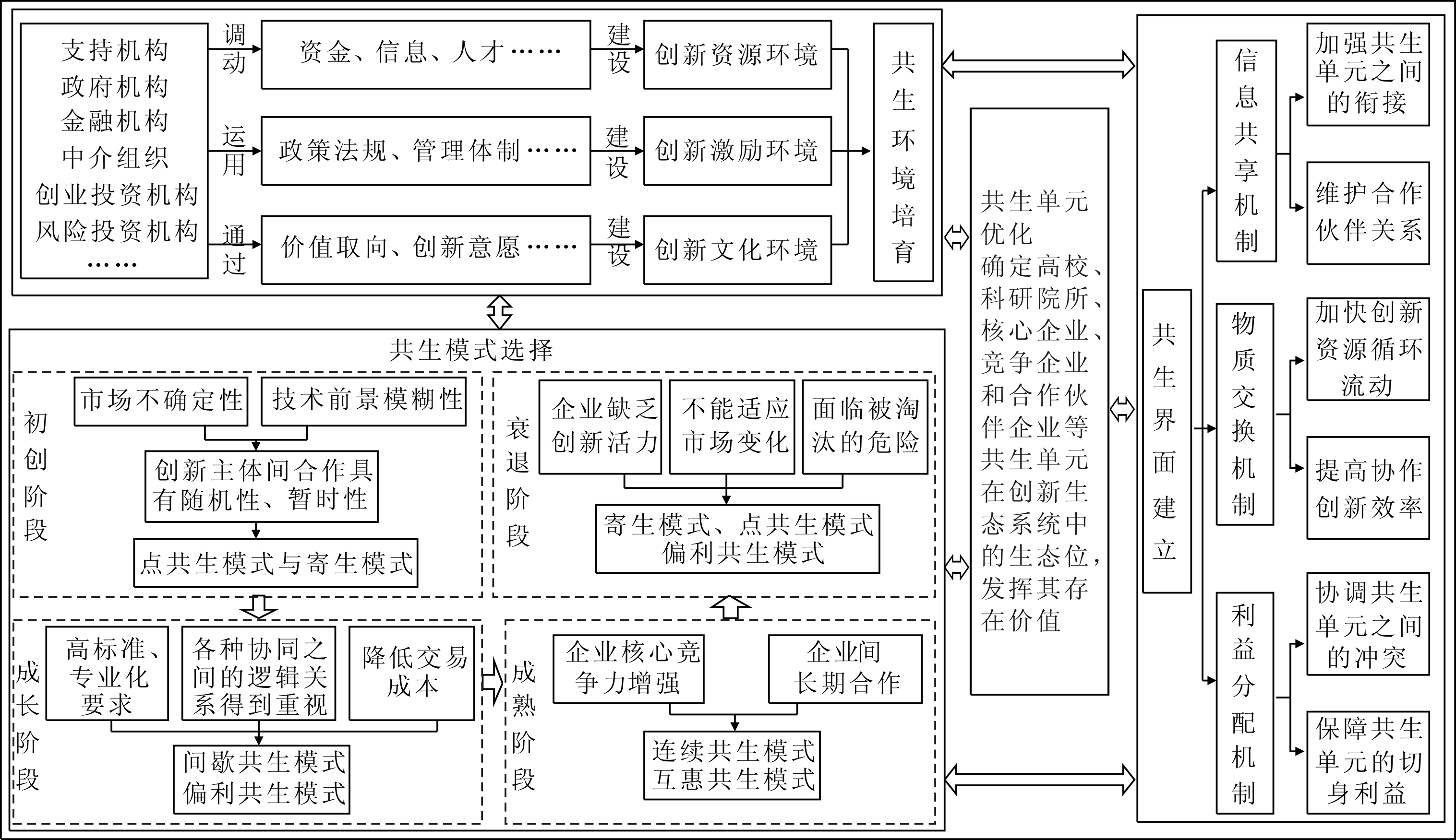 科技服务业创新生态系统是由共生单元、共生模式、共生环境和共生界面4个要素构成的具有相对稳定状态的共生系统,共生要素之间的互动作用影响共生系统发展规律和动态转化过程(张小峰,2013)。因此,需要从上述4个方面构建科技服务业创新生态系统“联动共生”发展机制,以促进创新系统的生态性和价值共创的持续性。