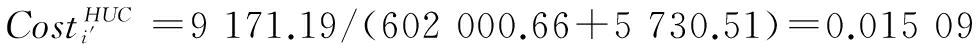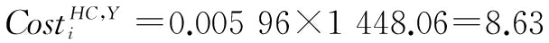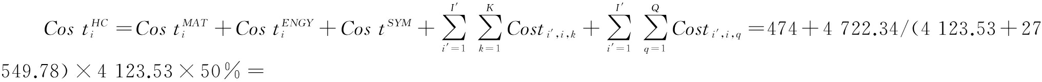 是生产工序i的结转成本。本文中隐性成本指投入生产工序i的各项成本,包括各生产工序的加工成本和结转成本。加工成本包括加工过程中各生产工序所需的材料成本、能源成本和系统成本;结转成本指其它工序结转至本工序用于加工生产的成本费用,包括回收废弃物的成本和中间产品成本。经过一系列连续加工步骤使得成本逐渐累积起来