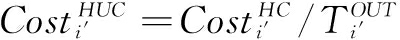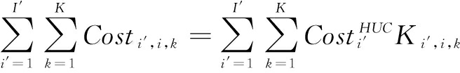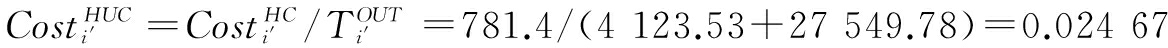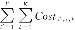 值得注意的是,生产工序i中需要的中间材料是在工序i′中产生的(Ki′,i,k),生产工序i的中间材料是生产工序i′的中间产品。Ki′,i,k在工序i′中产生,它也承担了工序i′的部分加工成本。为了确定工序i(Costi′,i,k)的中间材料成本,首先需要确定工序i′的单位隐性成本: