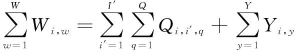 生产工序i产生的废弃物分为从工序i回收到工序i′的废弃物Qi,i′,q以及排放的废弃物Yi,y两部分: