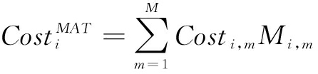 其中,Costi,m代表原材料m的单位成本,Mi,m代表生产工序i所需原材料m的数量。