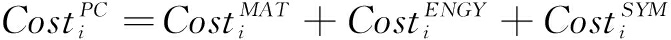 其中,Costi,e代表能源e的单位成本,Ei,e代表生产工序i所需能源e的数量。人工成本用
